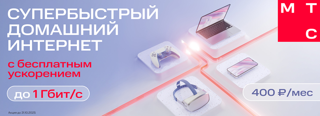 Подключите бесплатное ускорение сейчас и экономьте на самом быстром интернете от МТС в течение года!